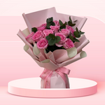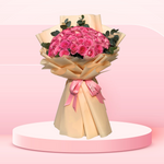 Accentuating 15 stem golden yellow roses are lush green fillers, which provide a beautiful contrast and enhance the bouquet's natural beauty. These green fillers add texture and depth, creating a visually...