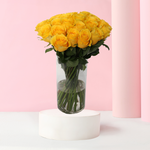 Bright sunflowers, carefully arranged in a glass vase, bringing a touch of golden warmth to any space.