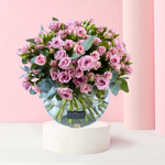 Introducing our exquisite Pink Bloom Vase – A breathtaking arrangement that combines the delicate beauty of pink and peach roses and gerbera daisies with the airy elegance of eucalyptus and...